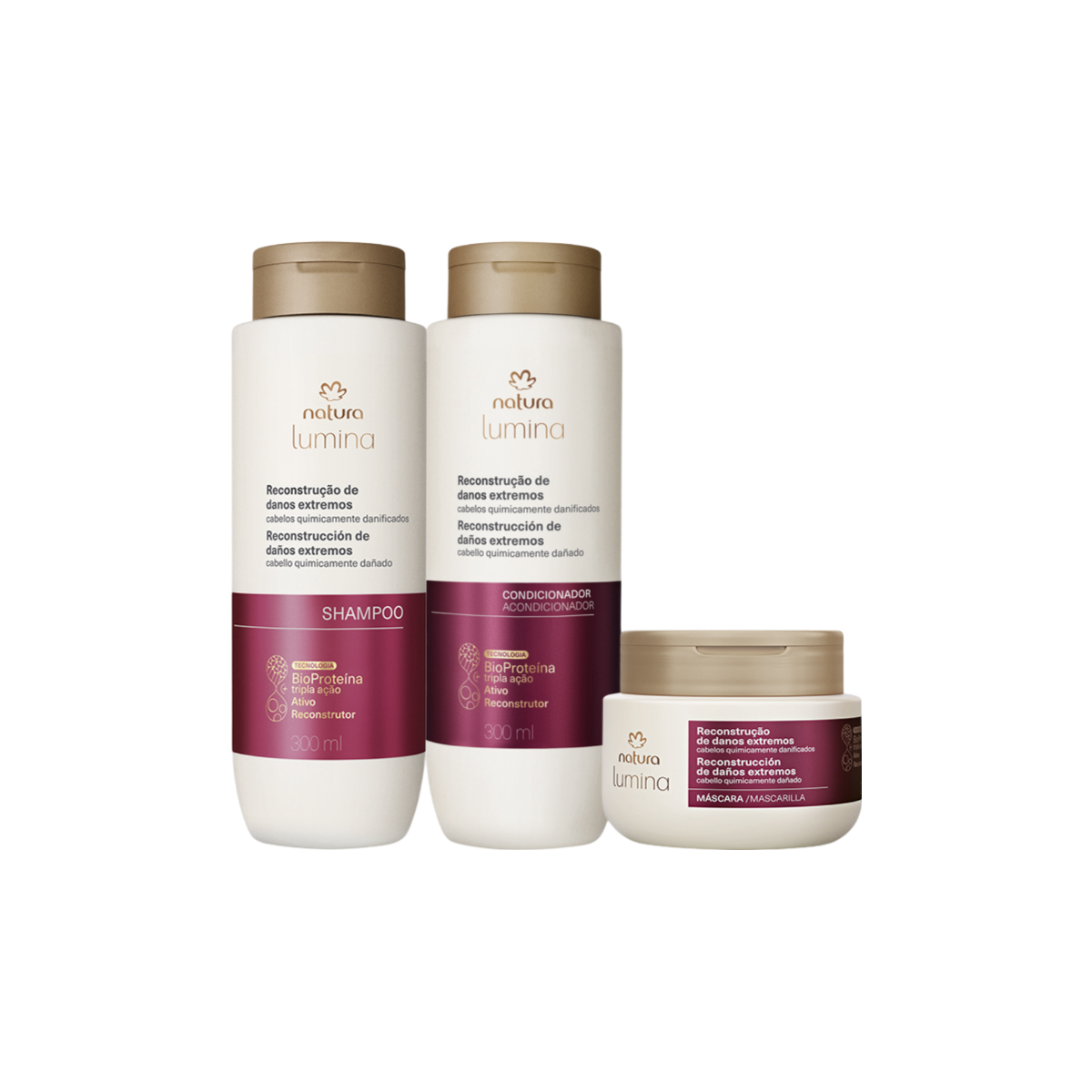 A linha Lumina combina tecnologia e inovação para oferecer cuidados específicos para diferentes necessidades capilares. Com produtos que vão desde shampoos e condicionadores até máscaras e finalizadores, Lumina é ideal para quem busca reparação, blindagem e proteção contra os efeitos do sol. A linha inclui opções para cabelos secos, coloridos, opacos e crespos, garantindo hidratação, brilho e proteção contra danos externos.